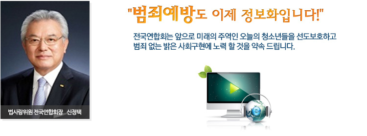 Àü±¹¿¬ÇÕȸ´Â ¾ÕÀ¸·Î ¹Ì·¡ÀÇ ÁÖ¿ªÀÎ ¿À´ÃÀÇ Ã»¼Ò³âµéÀ» ¼±µµº¸È£ÇÏ°í ¹üÁË ¾ø´Â ¹àÀº »çȸ±¸Çö¿¡ ³ë·Â ÇÒ °ÍÀ̸ç, ¾ÕÀ¸·Î ÀÌ È¨ÆäÀÌÁö°¡ ¹üÁË¿¹¹æÈ°µ¿¿¡ °ü·Ã À¯¿ëÇÑ Á¤º¸¸¦ ¾ò´Â ±³·ùÀÇ ÀåÀÌ µÇ¾î Áֱ⸦ ¹Ù¶ó¸ç ¸¹Àº ¼º¿øÀ» ±â´ëÇÕ´Ï´Ù.