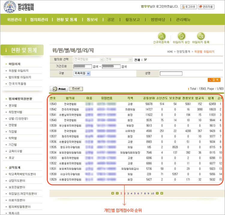 3. ¼øÀ§º¸±â ¹× ÇÕ°è Á¡¼ö - ¸¶Àϸ®Áö > ¸¶Àϸ®Áö °Ë»ö(ÇùÀÇȸ)